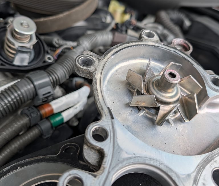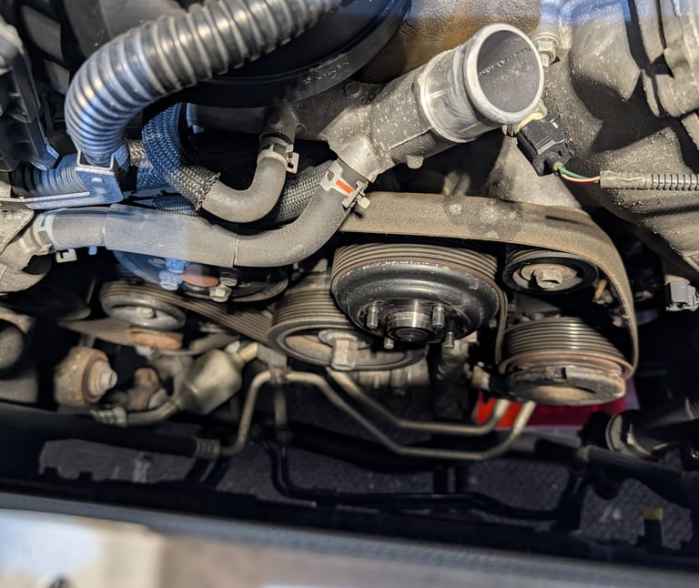 Water pump, thermostat, main belt, and tensioner replacement